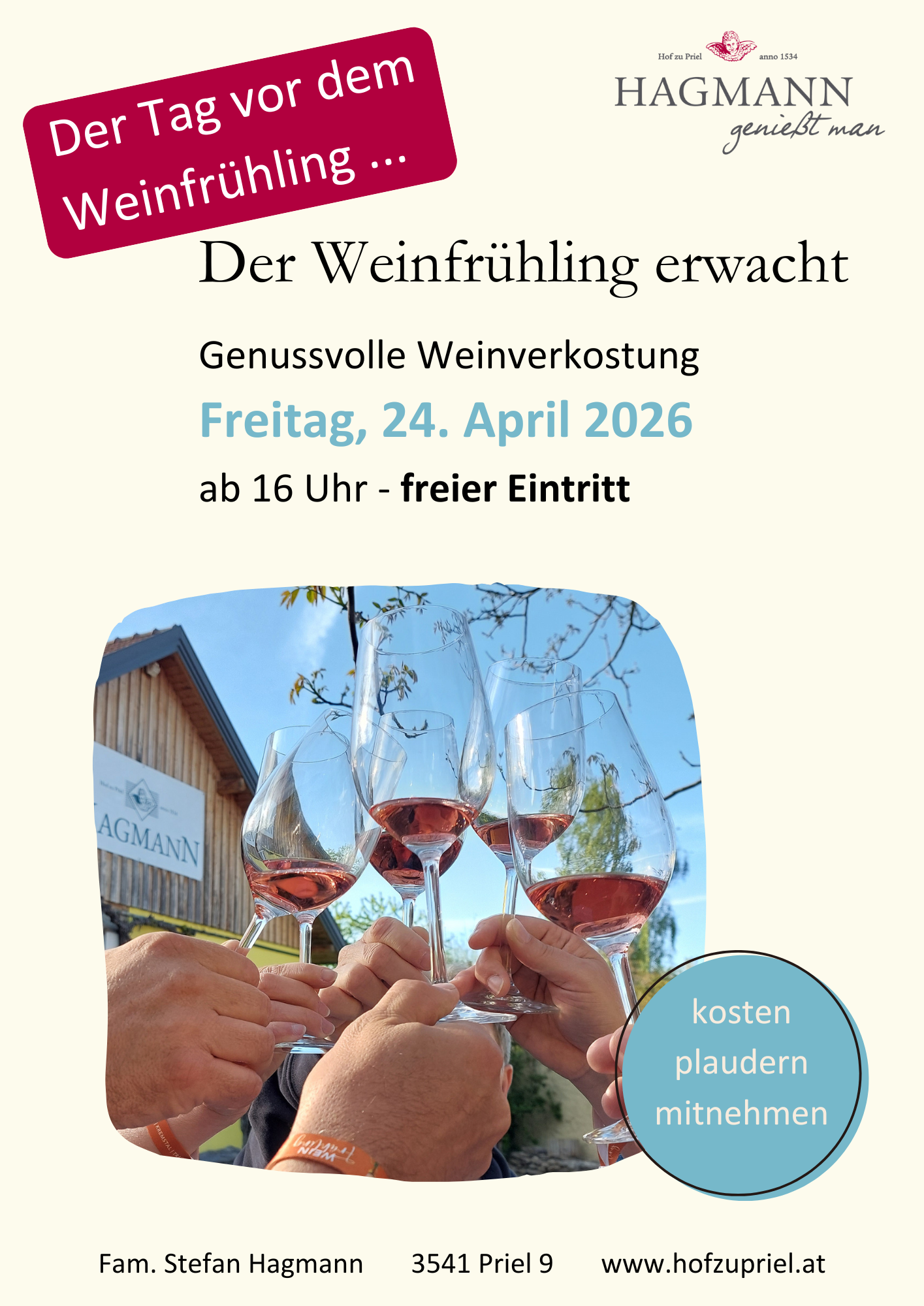 Besuchen Sie uns am Freitag, den 24. April, ab 16 Uhr und genießen Sie einen entspannten Start ins Weinfrühling-Wochenende – der Eintritt ist frei.